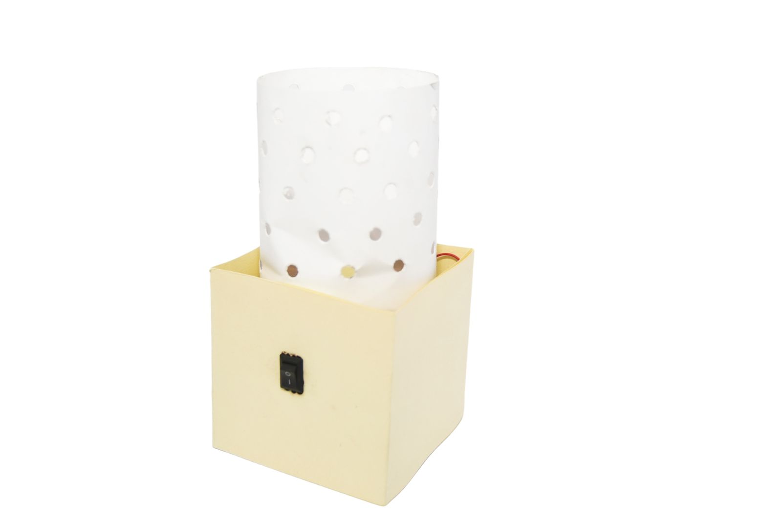 Nosso kit é enviado totalmente desmontado, com um manual em vídeo passo a passo que permite que os alunos aprendam enquanto montam seu próprio abajur giratório. O kit contém um motor de giro, um suporte de pilhas, mini interruptor, LEDs coloridos de alto brilho e uma caixa de papelão reciclado que pode ser personalizada como o aluno desejar.