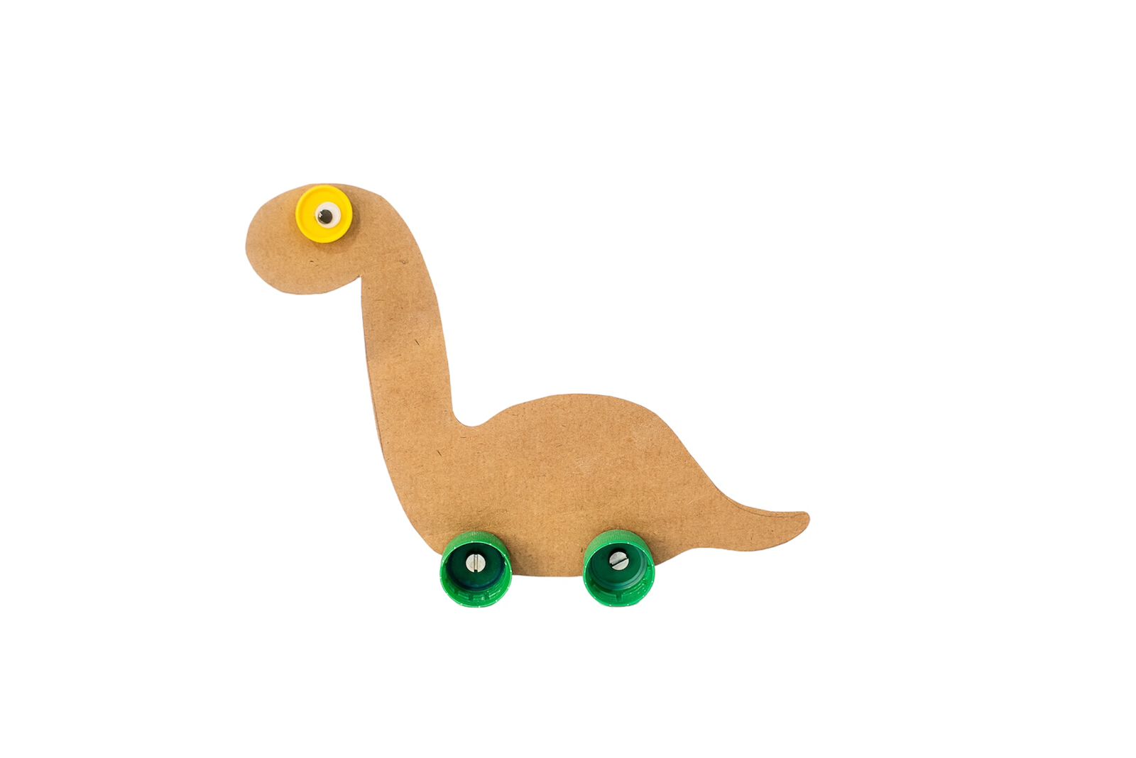 O kit Braquiossauro é um brinquedo educativo que permite às crianças aprender sobre a anatomia dos dinossauros, enquanto se divertem montando e personalizando seu próprio dinossauro. O kit inclui duas tampinhas perfuradas no centro para que a criança coloque o parafuso e a porca fazendo com que o dinossauro fique em pé e deslize como um carrinho. O corpo do dinossauro é feito de papel reciclado e bem resistente.