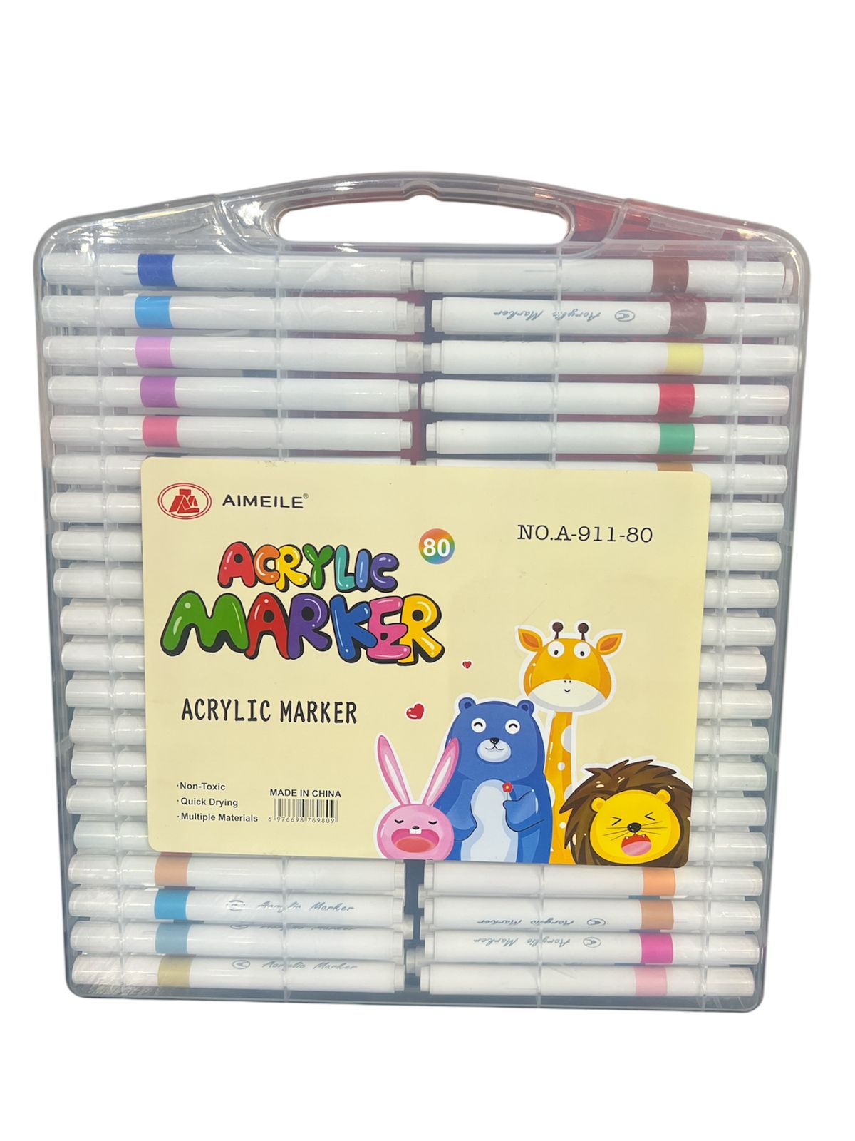 1 Estojo Canetinha Caneta Marcador 80 Cores Tinta Acrilica Permanente