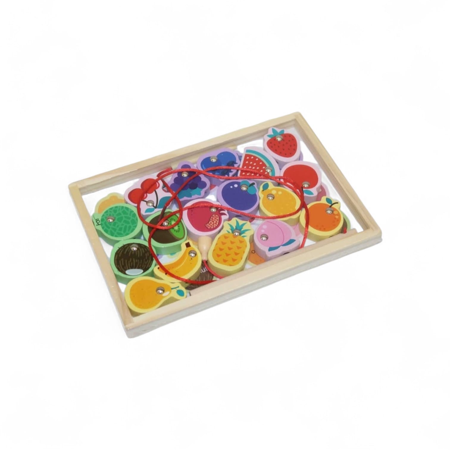 A pescaria magnética de frutas é um brinquedo educativo em madeira que estimula a coordenação motora, a concentração e a diversão das crianças. O jogo acompanha frutinhas coloridas em madeira com ímã e uma varinha de pescaria também com ímã na ponta, permitindo que a criança “pesque” as peças com facilidade.