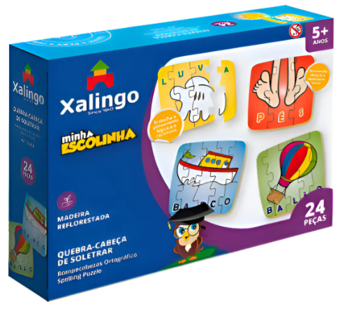 Com o Quebra-Cabeça Soletrar Minha Escolinha da Xalingo Brinquedos os momentos de diversão com aprendizado estão garantidos! O jogo é composto por 24 peças em madeira, que montam 6 imagens divertidas, para que a criança encontre e monte as peças de acordo com as figuras e palavras! O jogo desenvolve a atenção, a coordenação motora e o pensamento lógico enquanto apresenta a escrita de 6 palavras. Indicado para crianças a partir de 5 anos de idade. Garanta já e dê um presente divertido e educativo para os pequenos!