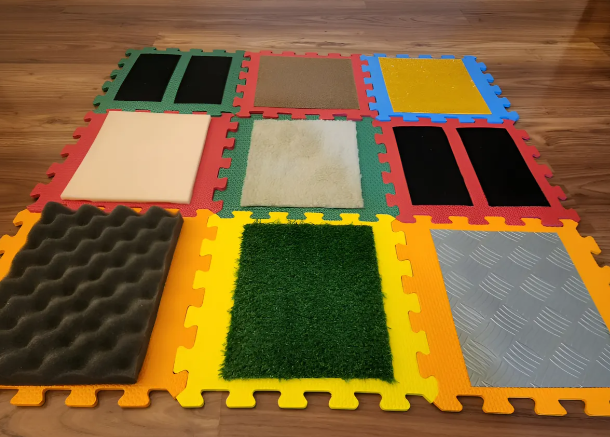 O Tapete Sensorial é uma ferramenta com várias texturas para estimular e despertar os sentidos dos bebês, crianças, adolescentes, adultos e pessoas com transtorno sensorial. O produto é composto de 4 a 12 divertidos tapetes sensoriais, cada um com texturas em cores diferentes, proporcionando uma estimulação sensorial única para a criança. O objetivo principal do tapete é trabalhar o tato, a sequência, o tônus e o equilíbrio da criança, promovendo um ambiente de aprendizado lúdico e prazeroso. Habilidades que esse produto pode ajudar a desenvolver são: Estimulação Sensorial: Cada tapete com texturas e cores diferentes ajuda a estimular os sentidos da criança, desenvolvendo suas habilidades sensoriais, como o tato e a visão. Coordenação Motora: A interação com o tapete sensorial estimula a criança a usar as mãos, dedos, pés e outras partes do corpo, contribuindo para o desenvolvimento da coordenação motora e habilidade manual. Desenvolvimento Cognitivo: O tapete sensorial oferece diferentes estímulos visuais e táteis, o que ajuda a promover o desenvolvimento cognitivo da criança, melhorando sua capacidade de atenção, concentração e memória. Aprendizado Lúdico: O ambiente lúdico e interativo do tapete sensorial torna o aprendizado mais divertido e prazeroso para as crianças. Relaxamento e Redução de Estresse: As diferentes texturas do tapete sensorial também podem promover a sensação de relaxamento e reduzir o estresse, tanto em crianças como em adultos, criando um ambiente mais calmo e tranquilo para as sessões terapêuticas. Maneiras que podemos utilizar o recurso: Exploração Tátil: Encorajar a criança a explorar as diferentes texturas e cores dos tapetes sensoriais usando as mãos e os pés Jogo de Imitação: Podemos utilizar como cenário para jogos de imitação, onde a criança pode representar atividades cotidianas conforme texturas e cores Histórias Infantis: Estimular a imaginação da criança e incentivá-la a criar histórias envolvendo os tapetes sensoriais e os personagens ou objetos que possam ser utilizados durante a brincadeira. Exercícios de Equilíbrio: Desafios de equilíbrio para a criança, como caminhar sobre os tapetes sensoriais ou equilibrar objetos enquanto se movimenta sobre eles. Jogo de Memória Tátil: Esconder objetos pequenos com diferentes texturas sob os tapetes e desafiar a criança a encontrá-los utilizando apenas o tato. Isso pode ajudar a melhorar a percepção tátil e a memória. Outras Informações: Texturas (tamanho 9 texturas) Grama Artificial Tecido Ovelhinha Colchão casca de ovo Chapa Ônibus PVC Esponja Abrasiva (Parta Áspera da Esponja) Estofado Veícular Lixa Espuma Eva Gliter Observações: Apenas os tamanhos de 12 texturas que contemplará todas as texturas acima descritas. Tatame Tatame colorido: - Material: E.V.A; - Anti-derrapante Montagem em encaixe rápido Dimensões: 30cm x 30cm x 0,7cm (CxLxA) por placa Não acompanha bordas